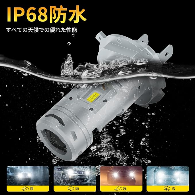 モデル: AILEO H4 LEDバルブ光束: 8000LM/バルブ、16000LM/ペア動作電圧: DC 9-32V(12V、24V車両に対応)色温度: ホワイト 6000K防水・防塵等級: IP68素材: 航空機用アルミニウム6063動作温度範囲: -40 C ~ +150 C寿命: 50000時間