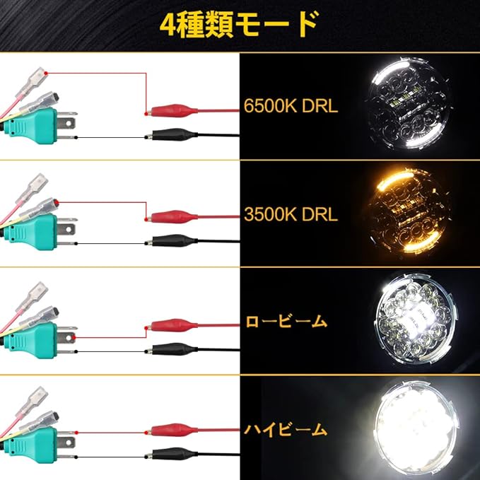 ☺【4種類モード】DRL 、ウインカー、ハイビーム、ロービーム。この7インチ ledヘッドライトは高輝度のCREE製LEDを採用して、ハイビーム4000LM、ロービーム2400 LM、抜群の明るさだけではなく、自然光に近い白色系が眼精疲労を有効に減少します。更に、ユニークなデザインはご愛車を道路で高級感有るインナーブラック仕様で精悍なイメージが出来ます。