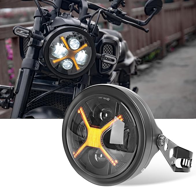 【パーソナライズさ】バイク ヘッドライト オールブラックの外装デザインが、個性的なブラック ウォリアー スタイルを作り出します。 X スタイルの白色/黄色昼间行走モのデイタイム ランニング ライトにより、運転中の視認性が向上します。