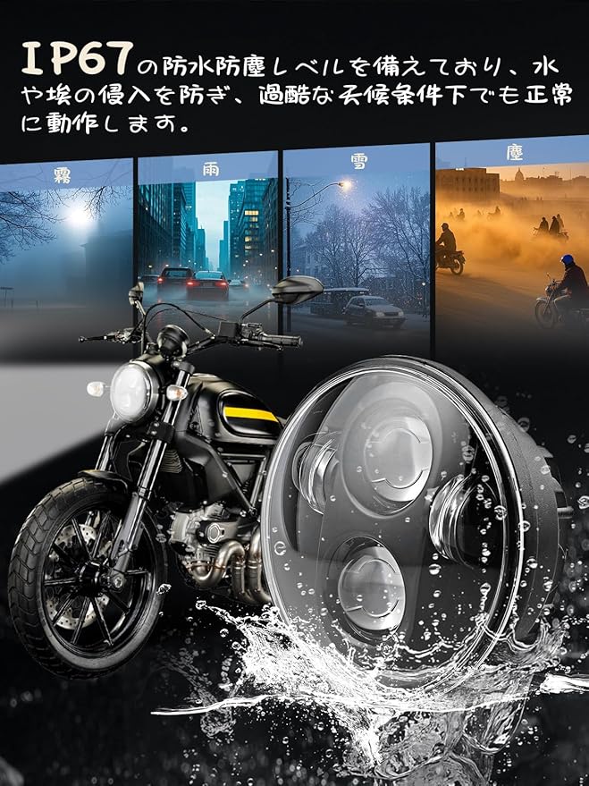 ●【高い汎用性】このヘッドライトは5.75インチに設計され、5.75インチの丸型ランプシェードで幅広いバイクや車種に適合し、様々なユーザーのニーズを満たす幅広い互換性を提供します。