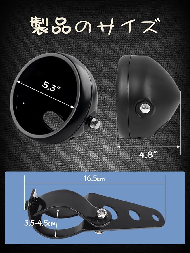 ●【対応車種】ほとんどのバイク/メトリックバイク/クルーザー/チョッパー/カフェレーサー/川崎バルカン/ホンダ/スズキなどのバイクに適合します。12Vバイクでしたら基本的に取付け可能です。対応車種に関しては、現在ご使用のヘッドライトシェルサイズをご確認の上、ご注文下さい。購入者が使いやすいように、ランプとランプハウジングが取り付けられており、分解する必要がなく、端子を直接接続して電源を入れると発光します。