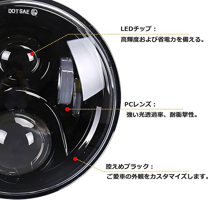 包装内容&保証:7インチヘッドライト1個。もし何かの問題があったら、ぜひご遠慮なくお問合わせください。問題を解決する為に最善を尽くすことをお約束致します。