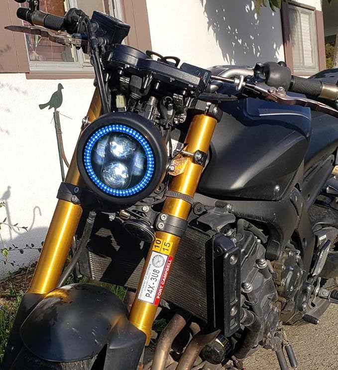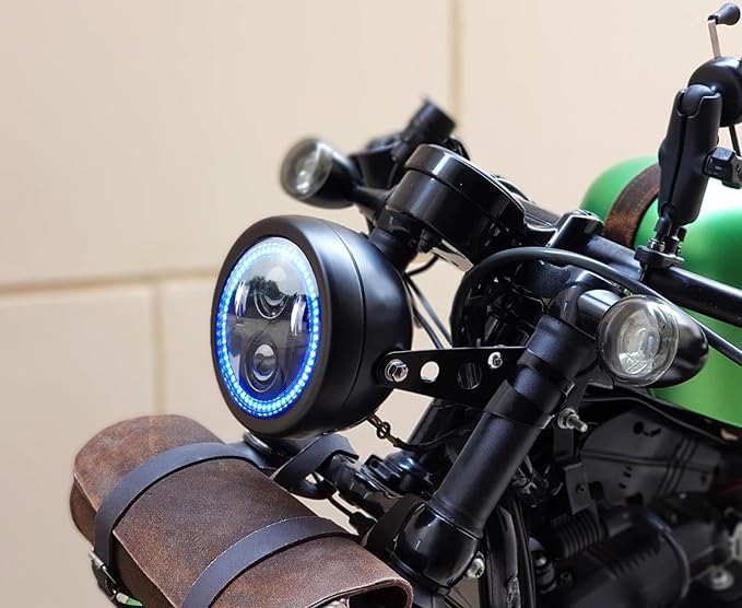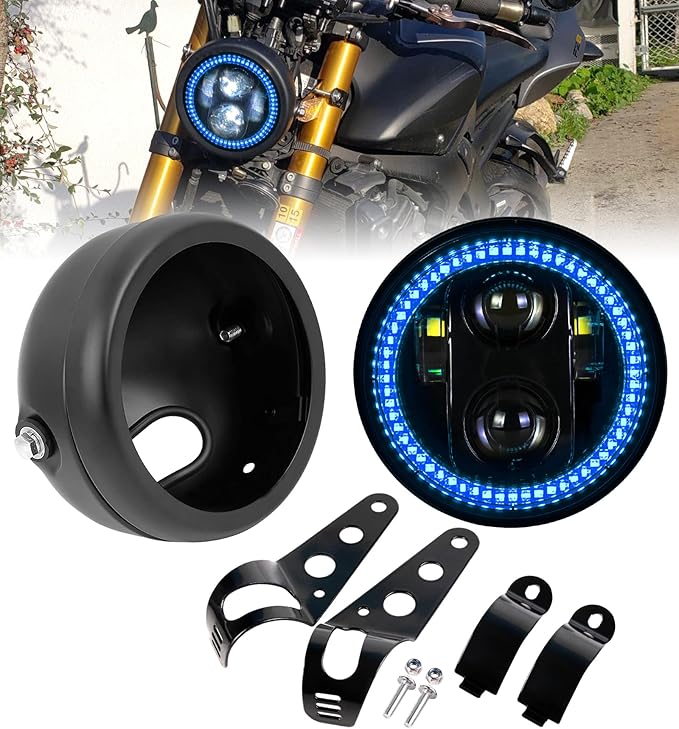 5.75インチLEDヘッドライト ブルーハローリング付き ヘッドライトハウジングバケット マウントブラケット付き シャドウ 750 レベル 500 バルカン カフェ レーサー チョッパー クルーザーに対応 | KAZESHOP
