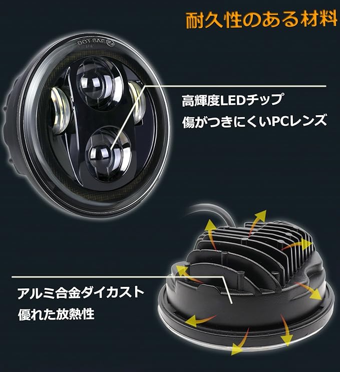 明るい性能:12V DC電圧、ハイビーム40W(3200lm)/ロービーム30W(2400lm)の強力な光源、元のヘッドライトよりもはるかに明るく、道路をよく照らします。