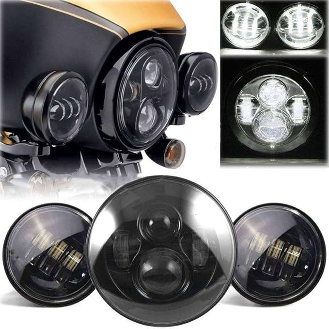 パッケージに含まれるもの:2X 4 1/2 "オートバイクリーLEDフォグライト+ 1X 7"オートバイH4 LEDヘッドライト+ 1X H4 LEDドライバー+ 1X H4-TO-H13配線アダプター