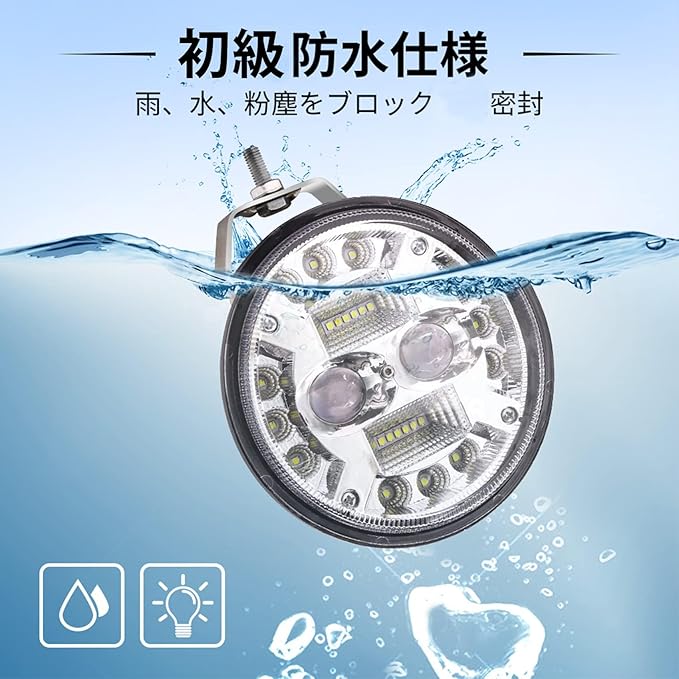 ★【湿気排出穴付き】5.75 LED ヘッドライトは初級防水仕様、全面密封設計、雨、水、湿気や粉塵をブロック、レンズに結露や汚れが形成されるのを防ぎます。*万が一レンズに結露などが出た場合、ラウンドヘッドライトのバックに湿気排出穴が付いていますので、それを開けて湿気を発散できます。