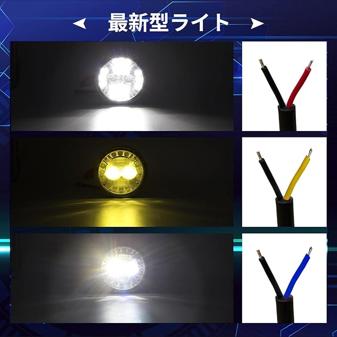 ★【フォグランプ機能】黄線+黒線ーで繋げば、ラウンドヘッドライトはプロジェクター「両眼」がイエローライト点灯、豪雨や濃霧の時に、早くとも前もって前方にある車両や歩行者に自車の動向を示し、安全提起に大変役立ちます。