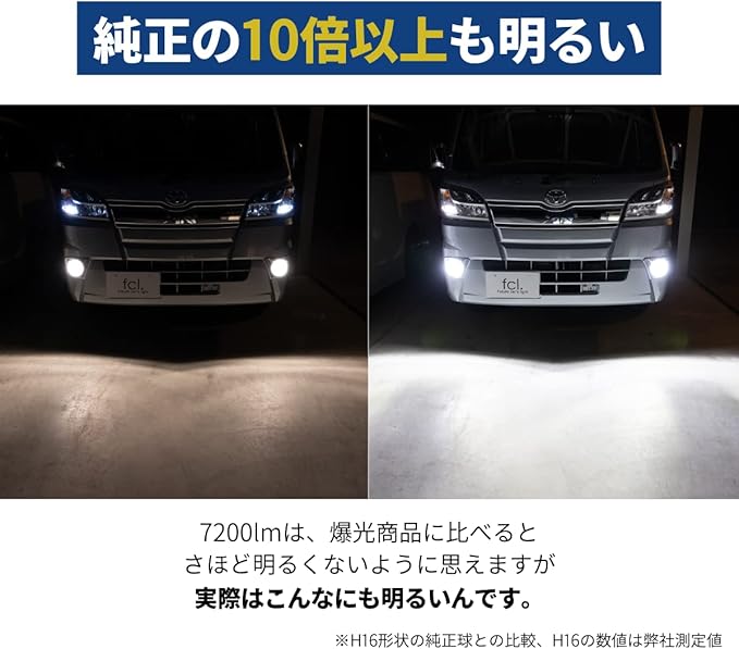 【純正比10倍の圧倒的な明るさ】 暗い夜道や悪天候での運転が変わる、革命的な視認性。純正ハロゲンバルブの10倍以上に相当する強烈な光が、路面や標識を隅々まで照らし出し、あなたのナイトドライブを強力にサポートします。対向車に配慮した純正同等の配光設計で、車検対応の明るいLEDヘッドライトをお探しの方に最適です。