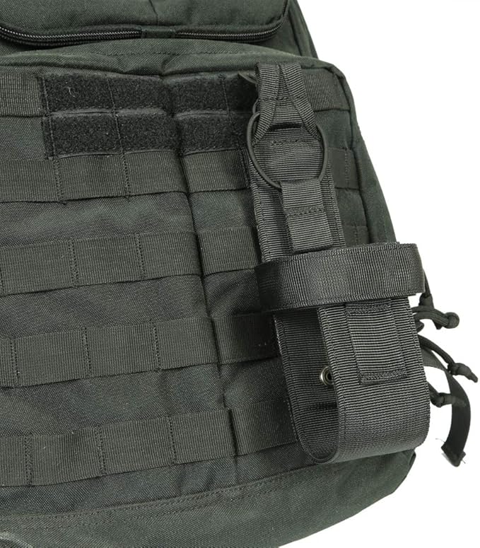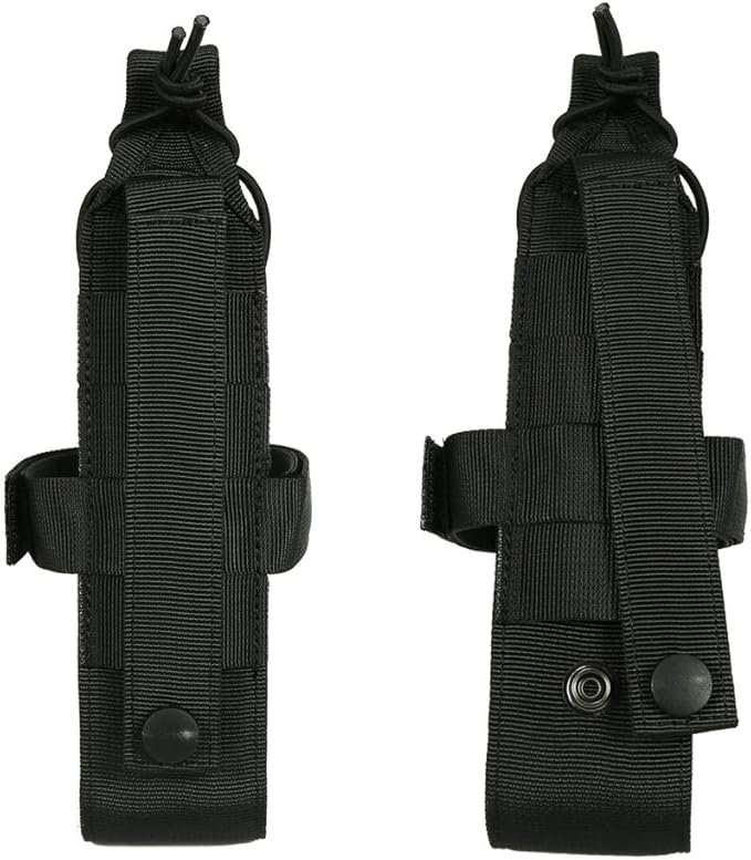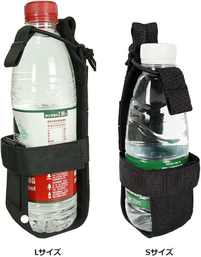 デザイン:背面にモールストラップ付きで、モール対応したバックパック、ベルト、ベストに取り付ける可能で、持ち運びには手軽です。マジックテープ式のベルトがサイズに合わせて調整可能です、いろんな直径のペットボトルや水筒が対応できます。上端のゴムバンドは自由に結束でき、安定感があります。