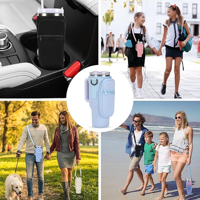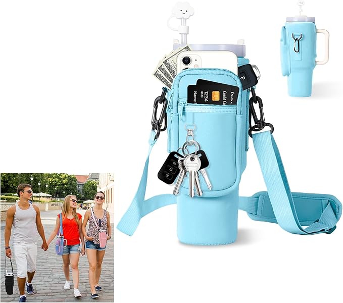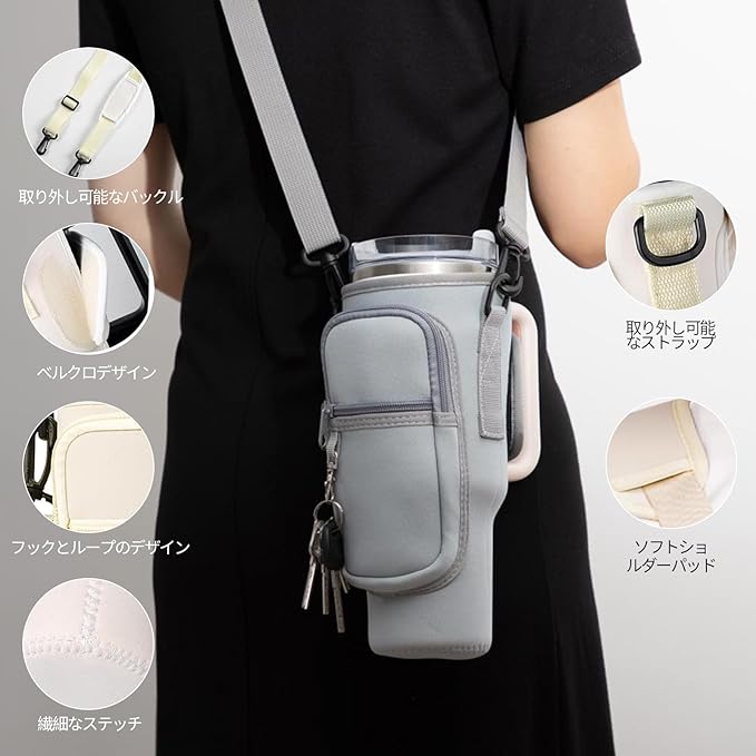 [GreenGee] 水筒カバー スタンレー用カップホルダー 【断熱・保冷・調節可能】 水筒ホルダー キャリーバッグ付き 斜めかけ 調節可能なショルダーストラップ付き 対応スポーツボトル 魔法瓶用 正規品 水筒キャリングケース アウトドア ハイキング ウォーキング 旅行用 | KAZESHOP