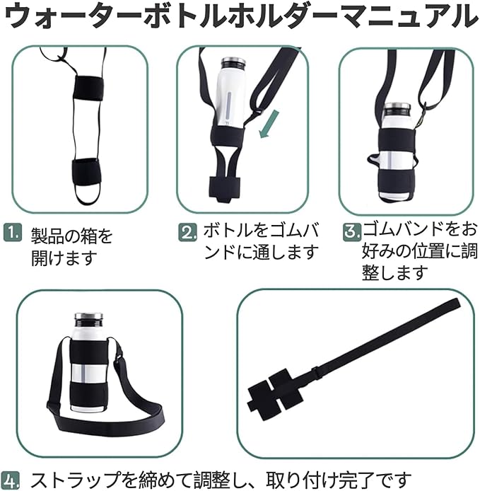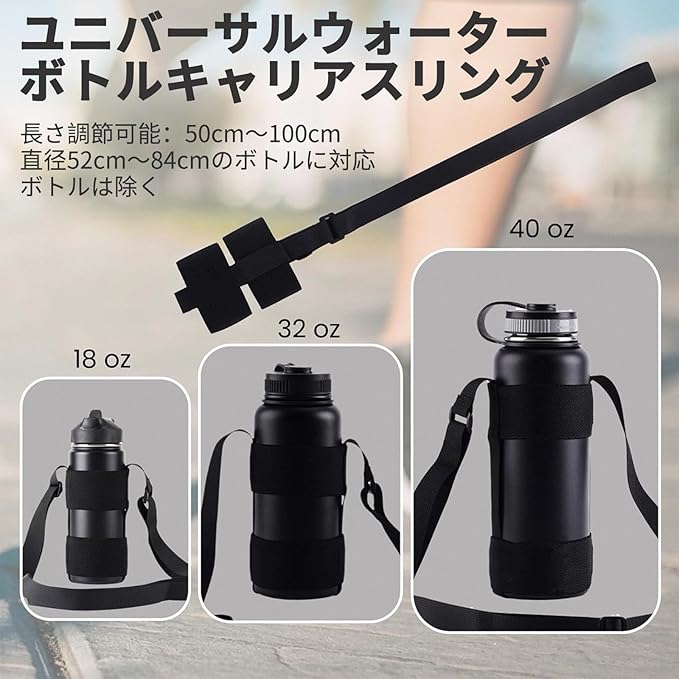 【適応サイズ】長さ調節可能:50cm〜100cm。直径52cm~84cmのボトルに対応。