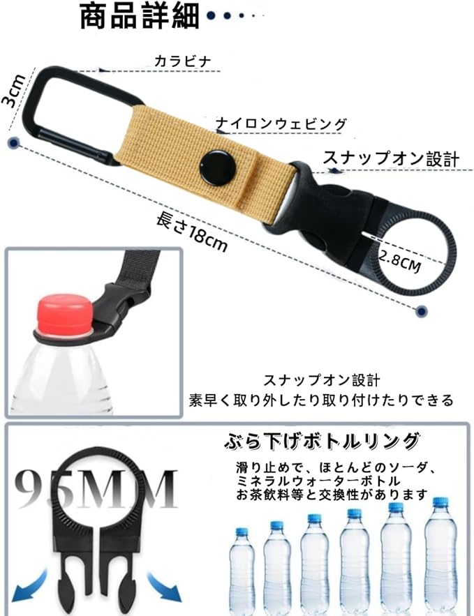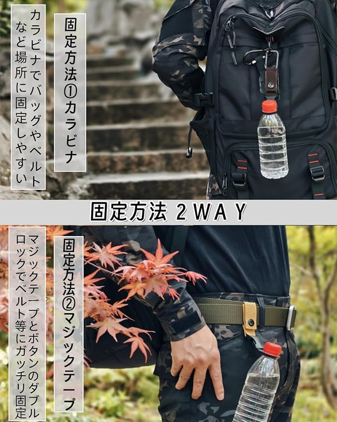 ペットボトルホルダー ドリンクホルダー カラビナ付き(取り外し可能)ベルトホールド可能 アウトドア 登山 キャンプ ハイキング 登山用 水分補給 着脱簡単