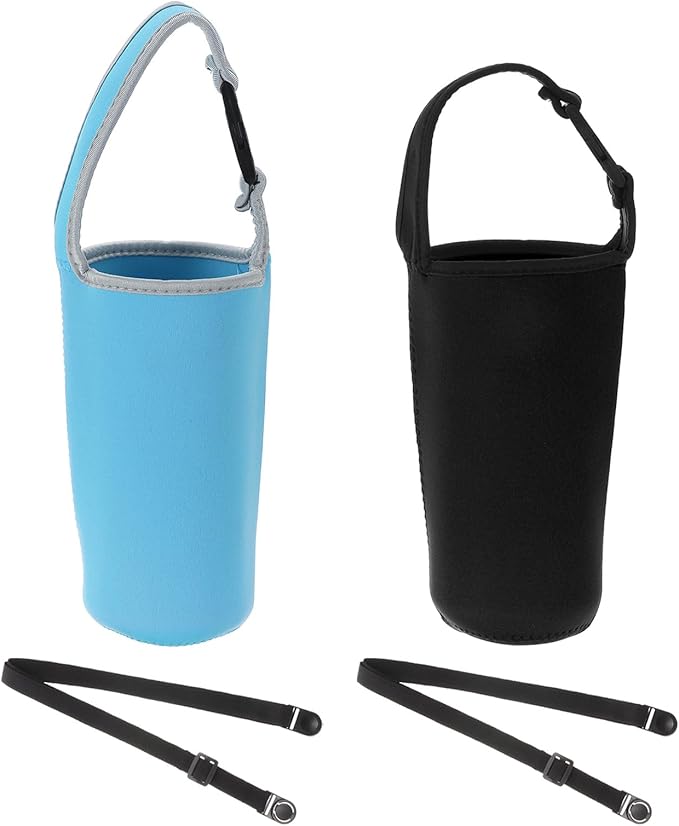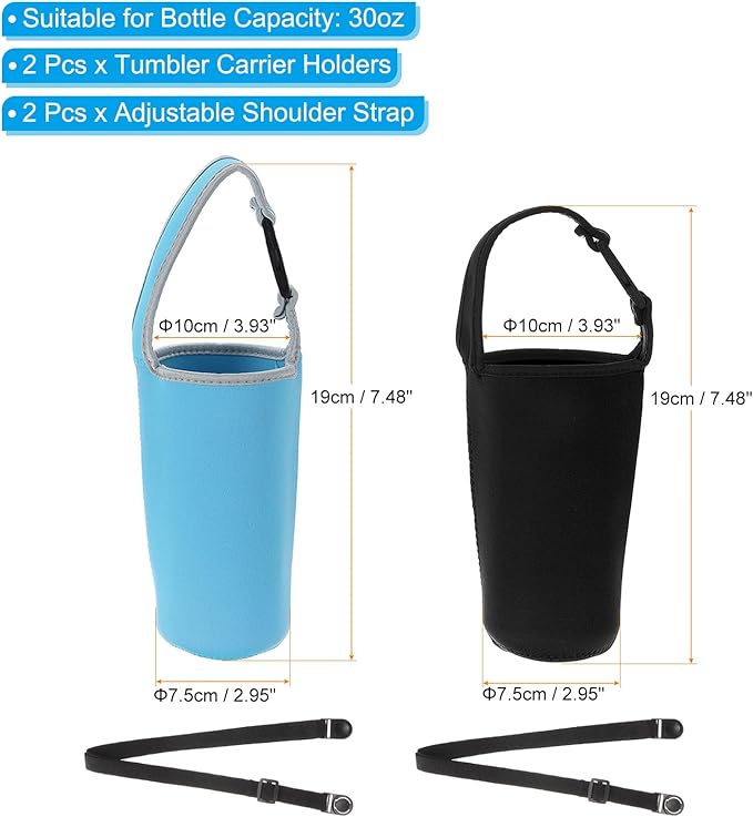 仕様: カラー:ブルー、ブラック、素材: ネオプレン、適したボトル容量:30oz、底直径: 7.5 cm、口の直径: 10 cm、全高:19 cm、パッケージリスト:2 x タンブラーキャリアホルダー、2 x 調節可能なショルダーストラップ