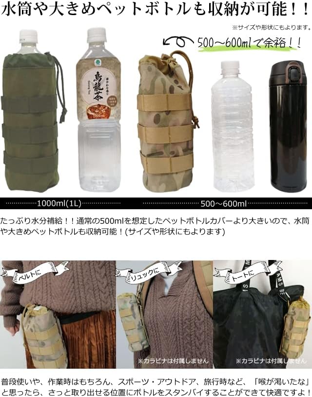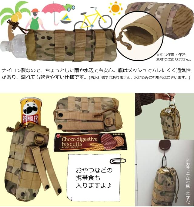[スーツケースカンパニー]ベルトやバッグに着脱 GPT ペットボトルホルダー ペットボトルケース ベルト通し Dカン付き ミリタリー リュック 固定 無地 迷彩 柄 迷彩(モスグリーン) | KAZESHOP