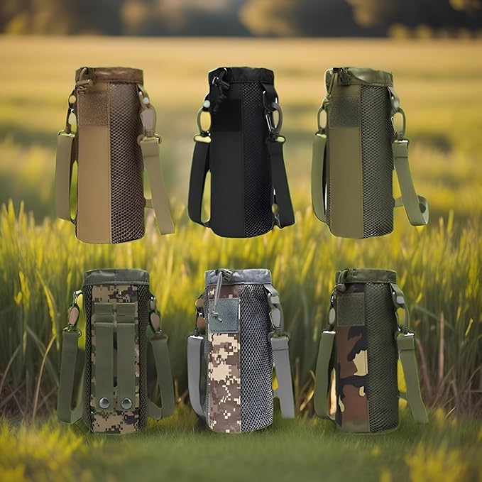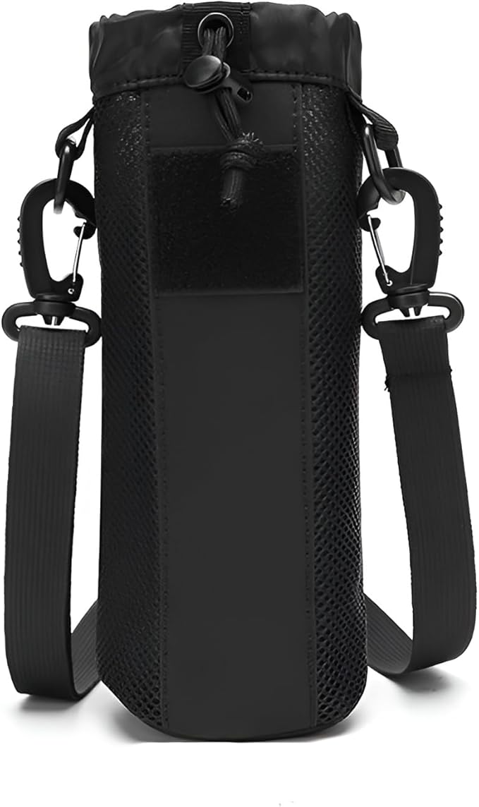 [lalarimi]水筒カバー ペットボトルホルダー 1L/1.5L対応 耐水ナイロン製 調節可能ストラップ付き アウトドア/通勤/旅行用 スマホ収納ポケット搭載 大容量設計 (ブラック) | KAZESHOP