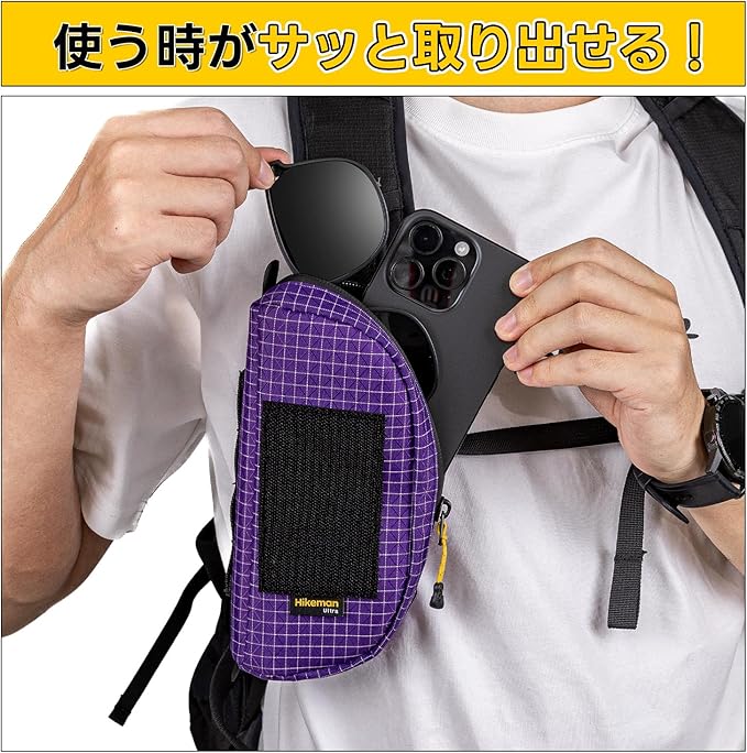 リュックに取り付けてサッとスマホなどの小物を取り出せる登山用ポーチ