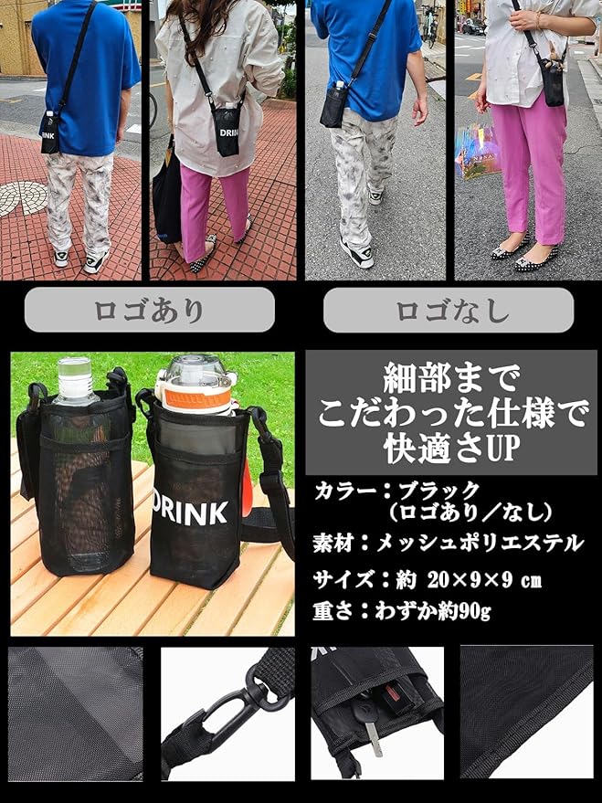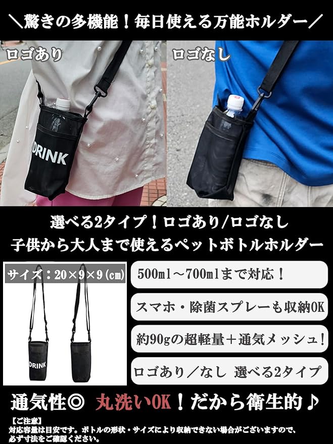 対応サイズ: 約500ml〜700mlのペットボトル・ステンレス水筒・炭酸ボトル対応。※一部太め形状は非対応。500mlペットボトルが入るサイズ感で、日常やアウトドアに。 20 9 9㎝