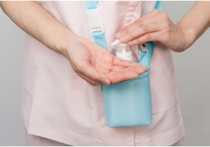 医療、福祉施設の手指消毒剤の携帯に。衛生的に管理できるポシェットです。250mlアルコールジェル容器がピッタリフィットします。