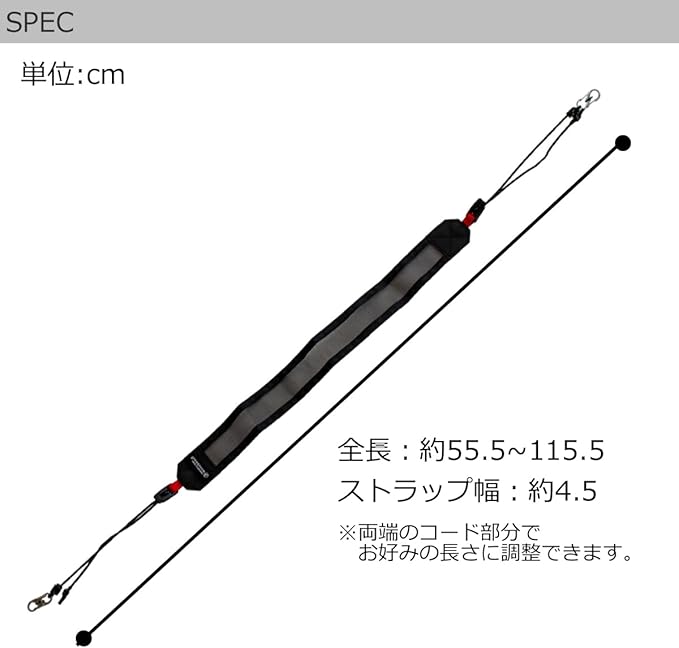 【サイズ】長さ約55.5~115.5 W4.5cm 【重量】約25g 【素材】ナイロン、テトロン、ポリアセタール樹脂、ステンレス鋼 【生産国】台湾