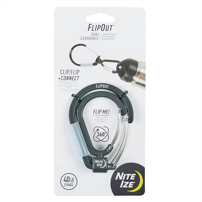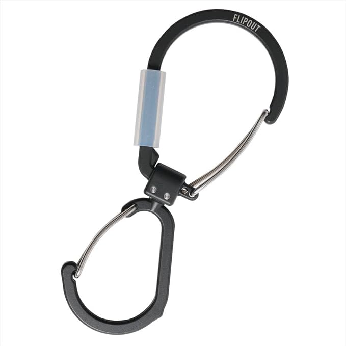 2方向に回転し、折りたたんでコンパクトに収納できる回転式カラビナ