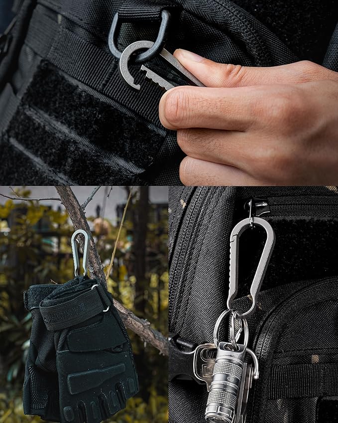 多機能キーホルダー フック: このチタン製軽量カラビナクリップは、家の鍵、自転車の鍵、車の鍵を保管できるだけでなく、EDC ツール、ヘッドフォン、その他の小さなアイテムを持ち運ぶのにも非常に便利です。アウトドア活動時に水筒、手袋、サングラス、帽子などの日用品を掛けるのにも使えます。