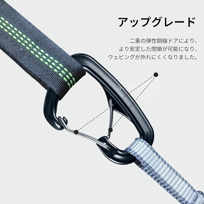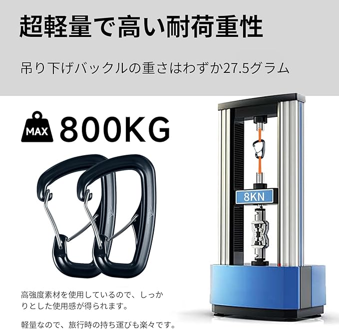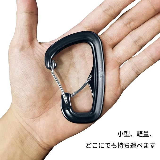「軽量高耐荷重」:重さわずか26グラムのカラビナクリップは、8KN(800KG)の高耐荷重を誇り、アウトドア愛好家に最適です。コンパクトなデザインと滑らかな表面により、持ち運びや操作が簡単です