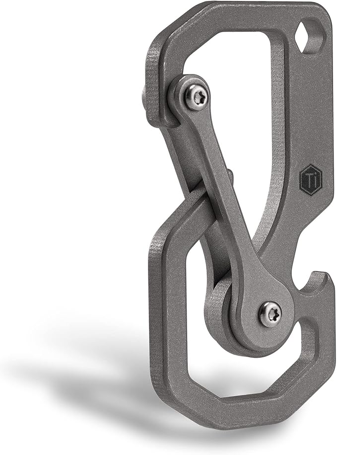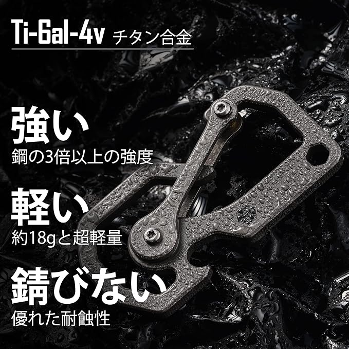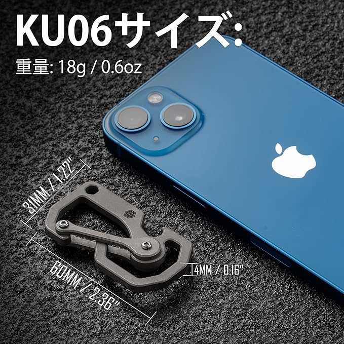 【チタンマルチツール】チタン合金からCNC加工され、腐食や錆びがなく、さらに、優れたサンドブラストとストーンウォッシュ加工により、この機能的なカラビナはユニークで優れた製品に仕上がっています。KU06全長60mm、幅31mm、厚さ4mmで、手に持ちやすいサイズです