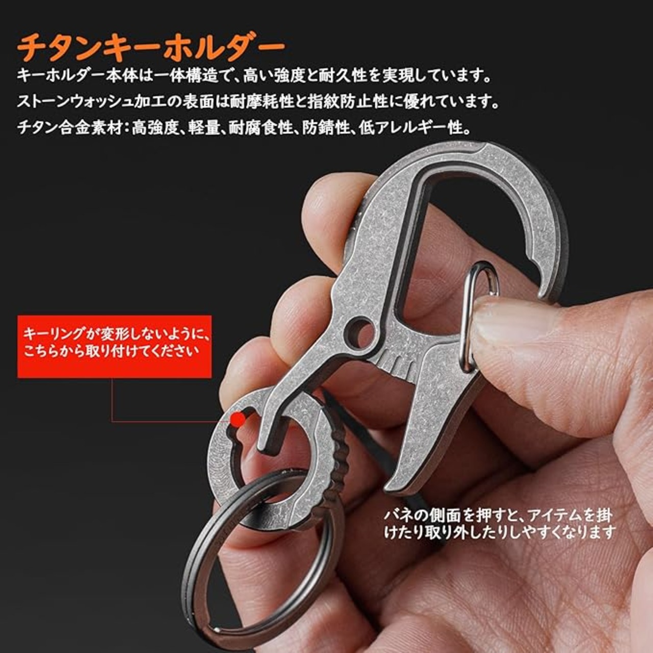TISUR チタン キーホルダー カラビナ フック 栓抜き クイック リリース 紛失防止 メンズ 多機能クリップ 取付簡単 頑丈 錆びない