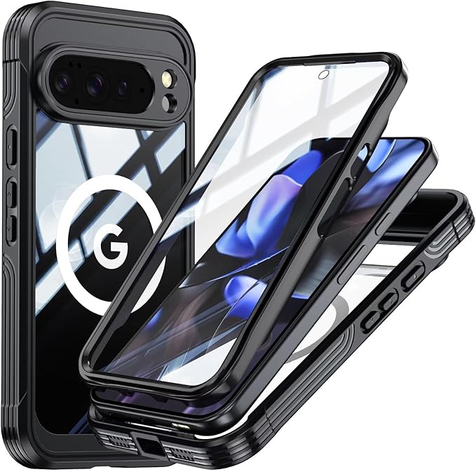 Disonbeir 対応 Google Pixel 10 Pro XL ケース MagSafe対応 全面カバー 両面ケース 液晶フィルム付き 360度全面保護 マグネット Qi充電 耐衝撃 アウトドア,ブラック | KAZESHOP