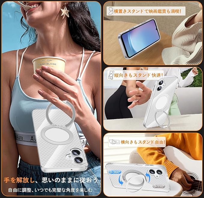 Google Pixel 10 Pro XL ケース クリア TPU素材 MagSafe対応 リング360 回転スタンド機能 縦横両対応 滑り止め 薄型 軽量 指紋防止 黄ばみ防止スマホケース レンズ保護 柔軟性 耐衝撃 米軍MIL規格取得 ストラップホール付き google pixel 10 pro xl カバー マグネット搭載 マグネットケース 車載ホルダー | KAZESHOP