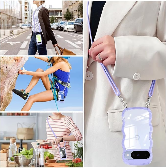 Google Pixel 10 用の ケース ショルダー ストラップ 波状フレーム Pixel 10 Pro 用の カバー 首掛け 斜めかけ 肩がけ 韓国 ピクセル 10 スマホケース(パープル) | KAZESHOP