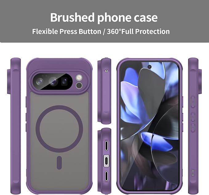 For Google Pixel 10 Pro ケース MagSafe対応 CNEVISON ワイヤレス充電対応 半透明 薄型 耐衝撃 マグネットケース バンパー スマホケ-ス グーグルピクセル 10 Pro カバー マット質感 軽量 耐衝撃 TPU+PC 米軍MIL規格 保護カバー(パープル) | KAZESHOP