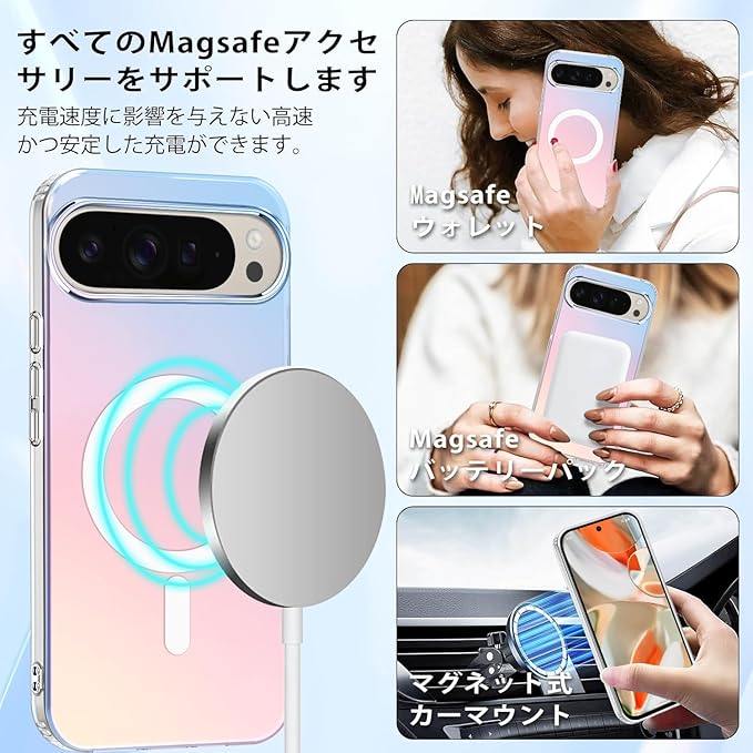 ZHIYIJIA Google Pixel 9 Pro XL 用 ケース MagSafe対応 半透明 変色 グラデーション ワイヤレス充電 耐衝撃 マグネット搭載 ピクセル 9pro xl ケース マグセーフ対応 耐久性 黄ばみなし 滑り止め 指紋防止 | KAZESHOP