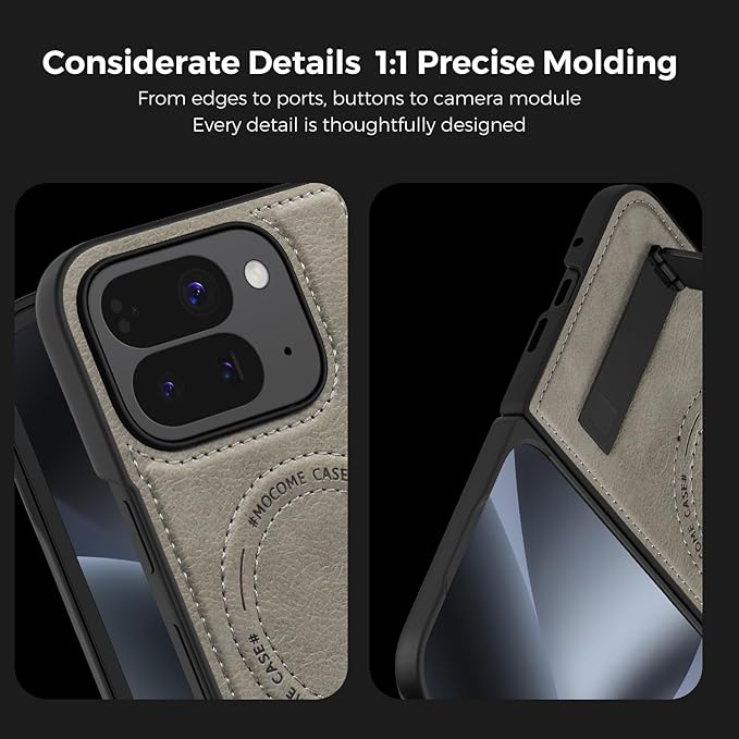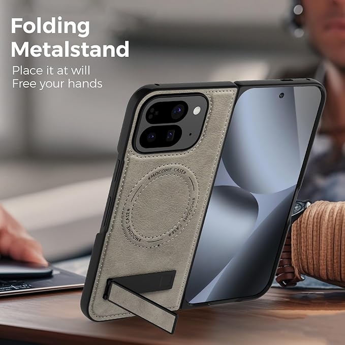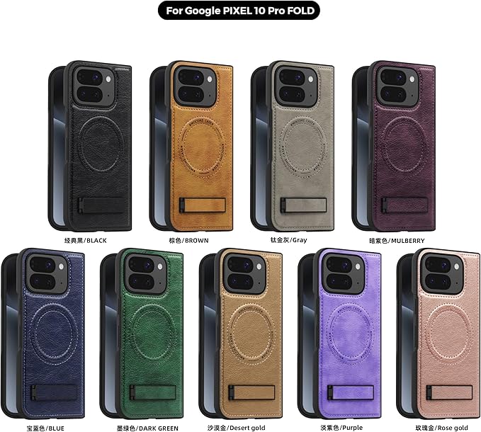 本製品はGoogle Pixel 10 Pro Fold専用設計の手帳型ケースです。TPU内層と荔枝紋レザー外層の複合構造が360度全方位保護を実現し、背面の折り畳み式金属スタンドが縦向き・横向き視聴角度を固定。カメラ周辺の微隆起設計が損傷リスクを軽減し、内蔵磁気構造が全ワイヤレス充電器と互換。立体皮革紋様が質感を演出すると共に、軽量設計により携帯快適性を最適化します。