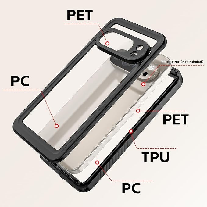 IP68防水等級 Google Pixel 10Pro 用 防水ケース フルプロテクトケース 内蔵スクリーンプロテクター付き ピクセル10Pro 防塵 防雪 耐衝撃 完全防水 操作便利 お風呂 適用 カバー,ブラック