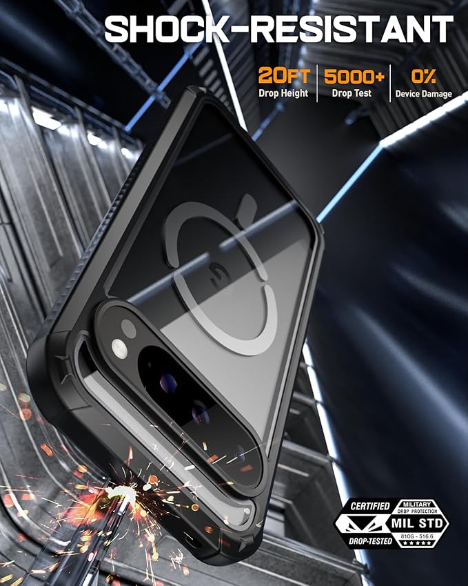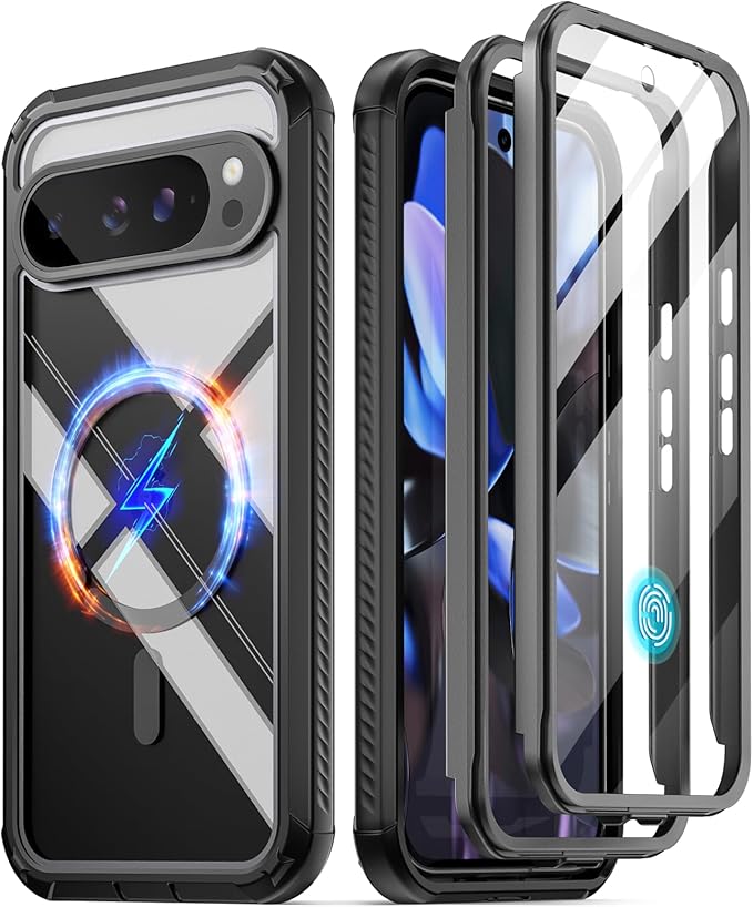 Poetic Guardian MagProケース Google Pixel 9 Pro XL 5G用 [MagSafe&指紋ID対応]、[フロントフレーム2枚]フルボディ耐衝撃クリアカバー、スクリーンプロテクター内蔵、ブラック/クリア | KAZESHOP