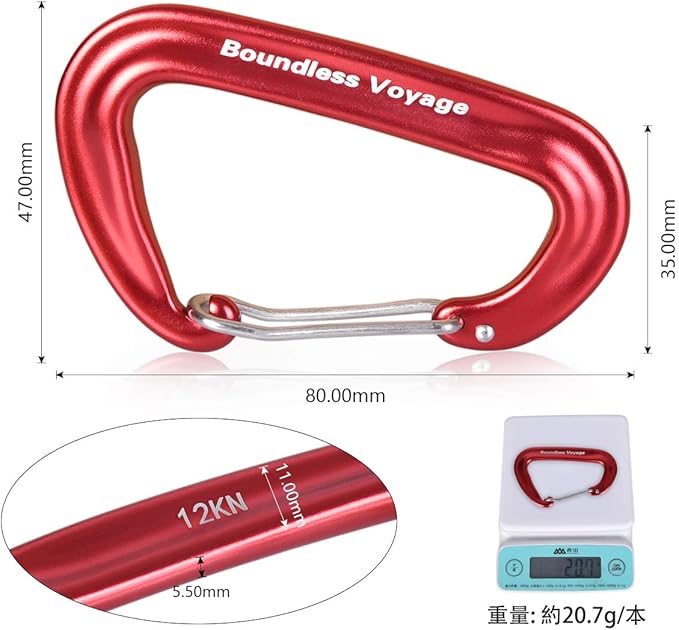 軽くて、コンパクト、持ち運び簡単 のため、耐用なアルミニウム合金素材、超硬、耐摩耗性と耐久性、退色しやすくない、錆びることはありません。このロックカラビナはかけたもの紛失を避けることに活用します。