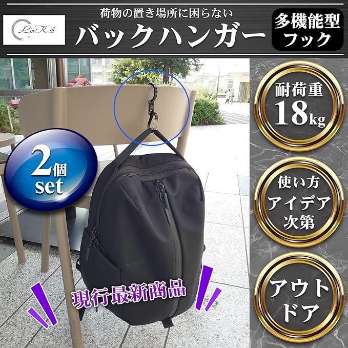 (2025 最新商品)360度回転式 多機能バッグハンガー BLACK&BLACK 2個セット 軽量アルミボディ