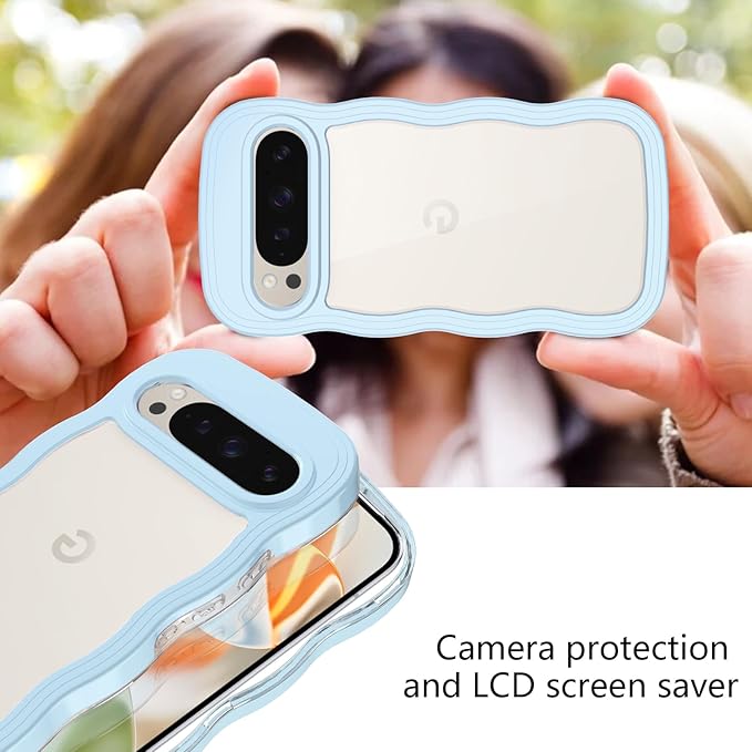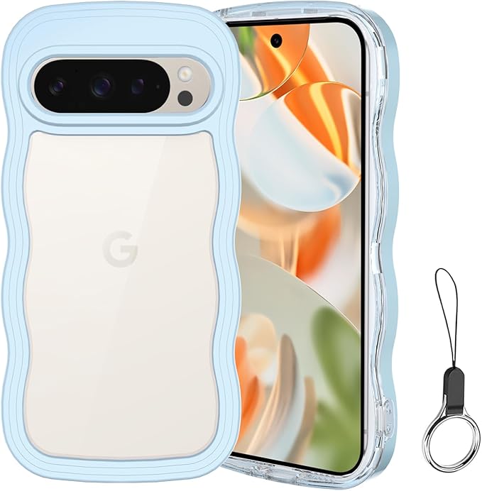 Google Pixel 10/10 Pro/9/9 Pro ケース クリア ウェーブ ピクセル 10/10 Pro/9/9 Pro TPU波状フレーム うねうね グーグル ピクセル10/10 Pro/9/9 Pro 滑り止め スマホケースウェーブ デザイン 手にフィット 韓国 可愛い 女性用 女子向け 透明 ケースカバー 人気 落下防止 耐衝撃 ストラップホール付き グーグルピクセル10/10 Pro/9/9 Pro なみなみ ワイヤレス充電対応(Google Pixel 10/10 Pro/9/9 Pro-ブルー)