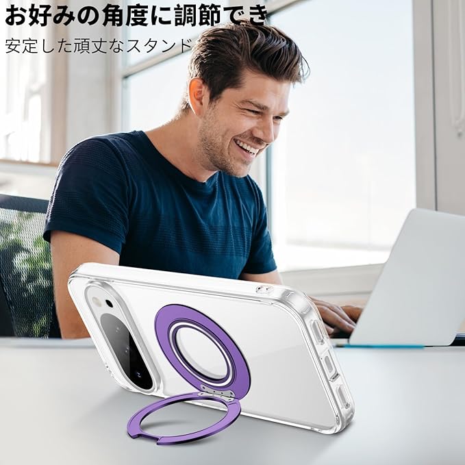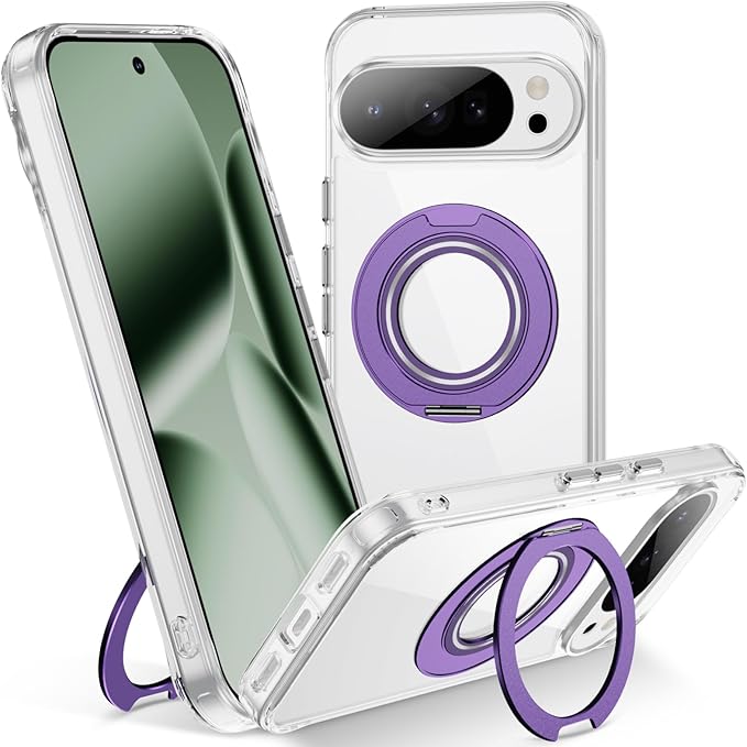 Jajaful 対応 Google Pixel 10/10 Pro 用 ケース クリア Magsafe対応 360 回転スタンド 車載ホルダー 対応 指紋防止 黄変防止 耐衝撃 米軍MIL規格 SGS認証 ピクセル10カバー ピクセル10Pro 携帯ケース ぐーくるぴくせる10 携帯カバー ワイヤレス充電対応 スマホケース ストラップ穴付き 軽量 透明 PC+TPU パープル