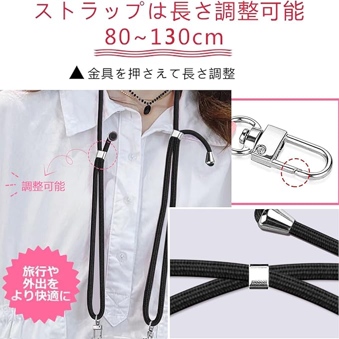 【長さ調整可能・使いやすさ】柔らかいナイロンストラップで首を快適に保ち、ストレッチの長さを調整でき、ストラップを取り外して、電話ケースを単独で使用できます。