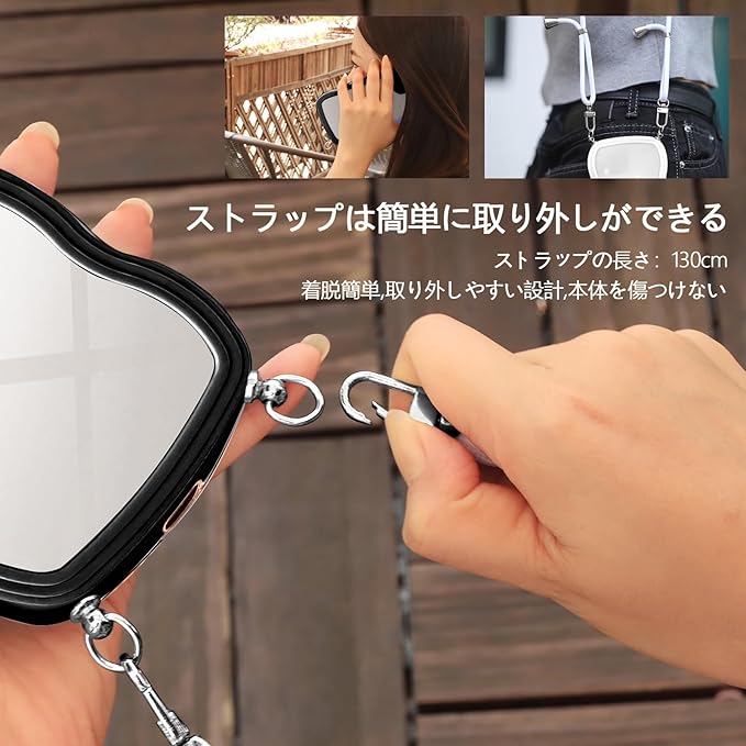 【ネックレスケース】シリコンケースには首から下げられるようにショルダーストラップが付いており、まるでアクセサリーのようにスマホを着用できます。落下防止はもちろん、紛失防止にも役立ちます。 特に旅行や、小さなお子様がいるお母さんにおすすめ、手荷物がある時にスマホを持ち続ける必要がなくなりますし、スマホを落としたり無くしたりといった心配もなくなります、バッグから携帯を取り出す手間がはぶけます。