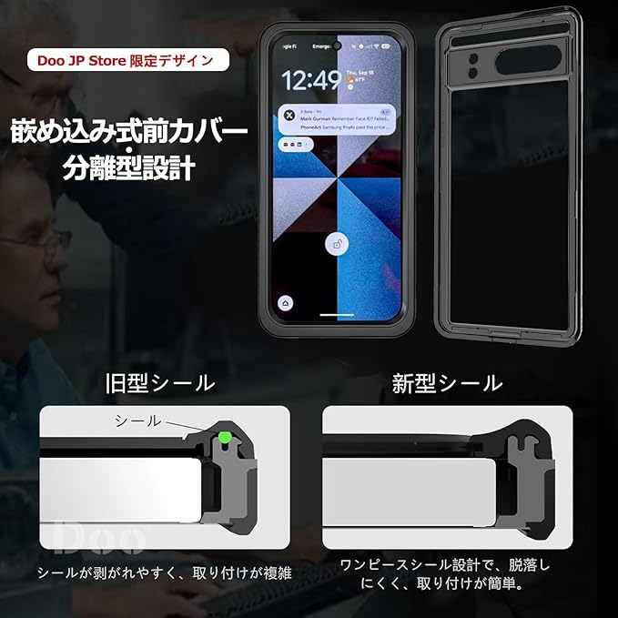 「Doo」For Google Pixel 10 Pro 防水ケース For グーグル ピクセル10 Pro 防水カバー IP68防水規格 For ピクセル10 Pro クリアケース ワイヤレス充電対応 米軍MIL 耐衝撃 軽量 滑り止め キズ・汚れ・塵・砂・おがくず防止 防水ケース Google Pixel 10 Pro 5G 6.3インチ対応(ブラック)