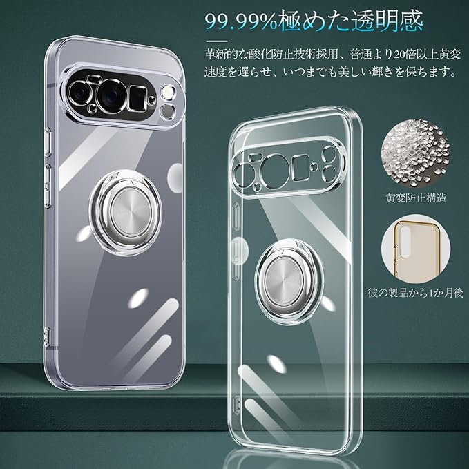 Google Pixel 10 Pro XL ケース リング付き クリア Pixel 10Pro XL ケース 耐衝撃 スタンド機能 ストラップホール付き 軽量 スリム ソフト TPU ピクセル 10pro xl カバー 透明 TPU 擦り傷防止 落下防止 (クリア) | KAZESHOP