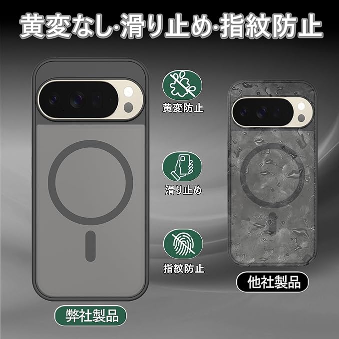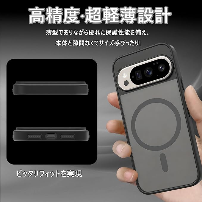 HKKAIS 対応 Google Pixel 10 Pro XL 用の ケース ワイヤレス充電 米軍MIL規格 MagSafe対応 耐衝撃 半透明 マット仕上げ 滑り止め 黄ばみ防止 指紋防止 (マットブラック) | KAZESHOP