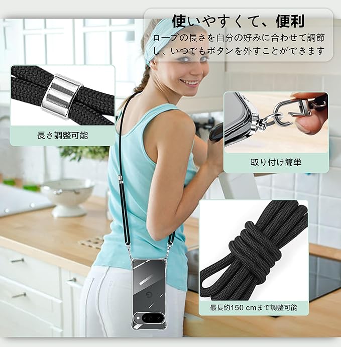 xiusiteli Pixel 10 / Pixel 10 Pro 用 ケース クリア ショルダー ピクセル10/10pro カバー ネック マホケースストラップ付き 肩掛け 斜めかけ 縄掛けケース 縄掛け TPU 薄型 軽量 取り外し可能 落下防止 柔軟で変形しない 【透明】 | KAZESHOP