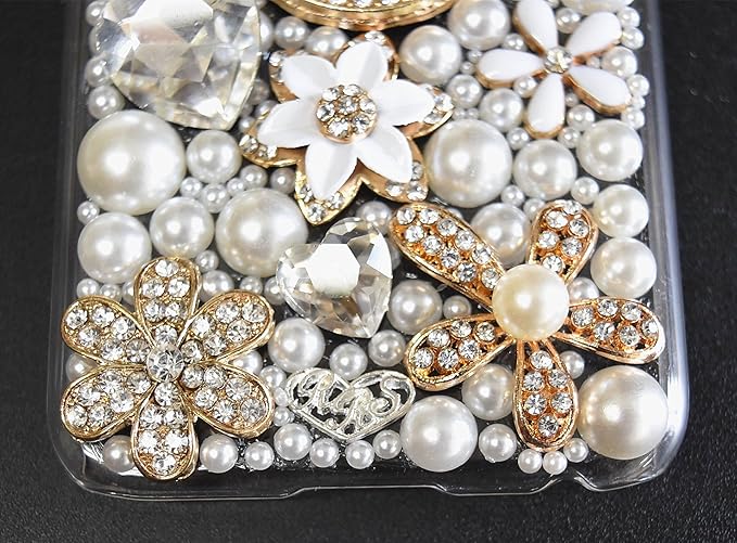 本体のカメラやフラッシュなどの位置によるケースの形状上デコレーションできない部分がございます。またこの原因でストーンやパーツの配置の差異が生じる場合がありますので、注意してご注文ください。