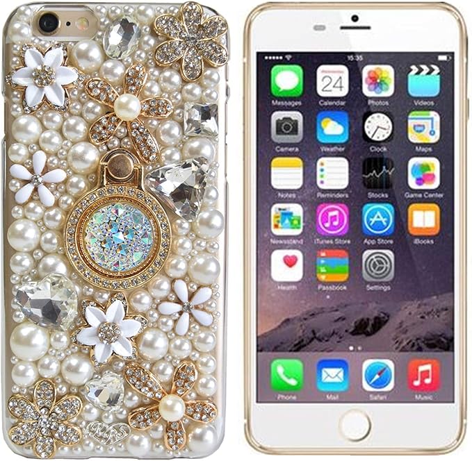 厳選したラインストーン、クリスタルなどのパーツを使用し、 1点1点ハンドメイドで丁寧に制作させて頂いております。さらに宝石のようなエアバックスタンドを使用のため、邪魔なく便利で、とても豪華で素敵なケースです。