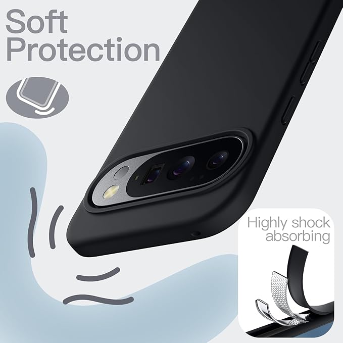 JETech Google Pixel 10 Pro XL 2025用 ゲル状シリコーンケース シルキーソフトタッチ フルボディ保護 傷つけ防止 耐衝撃 スマホカバー マイクロファイバー内装付き (オブシディアン) | KAZESHOP