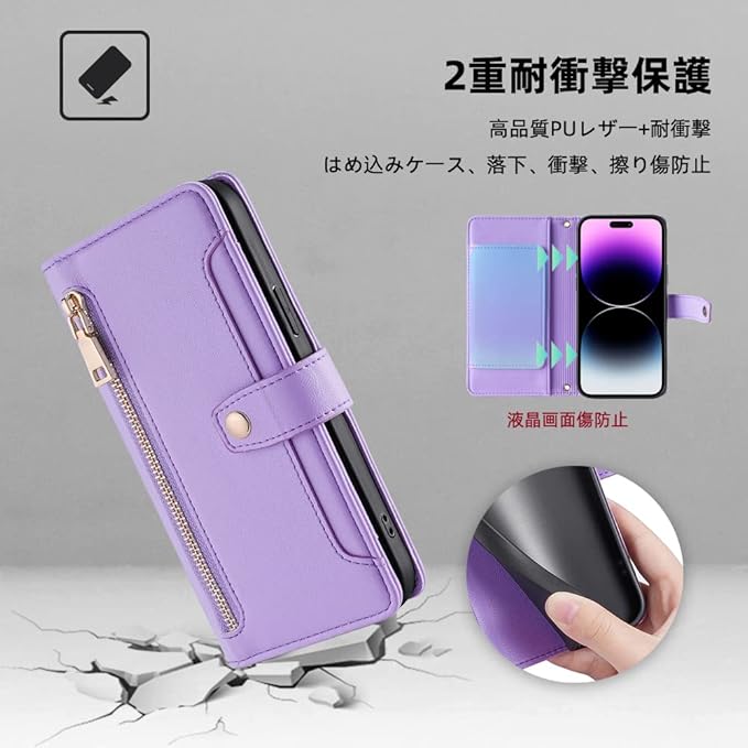 For Google Pixel 10 ケース 手帳型 Google Pixel 10 Pro ケース GooglePixel10/ 10Pro カバー【COKOVI】スマートフォンケース 手帳型 カードホルダー付き ショルダーストラップ 肩掛け 首掛け 耐衝撃 御洒落 女性 可愛い おしゃれ 高級PUレザー スタンド機能 サイドマグネット チャックポケット付き(紫色)